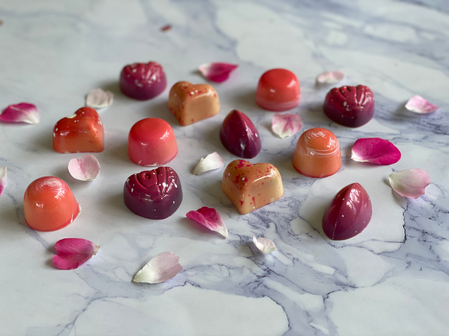 Plant based creations, Fair trade chocolate, eco-friendly packaging.